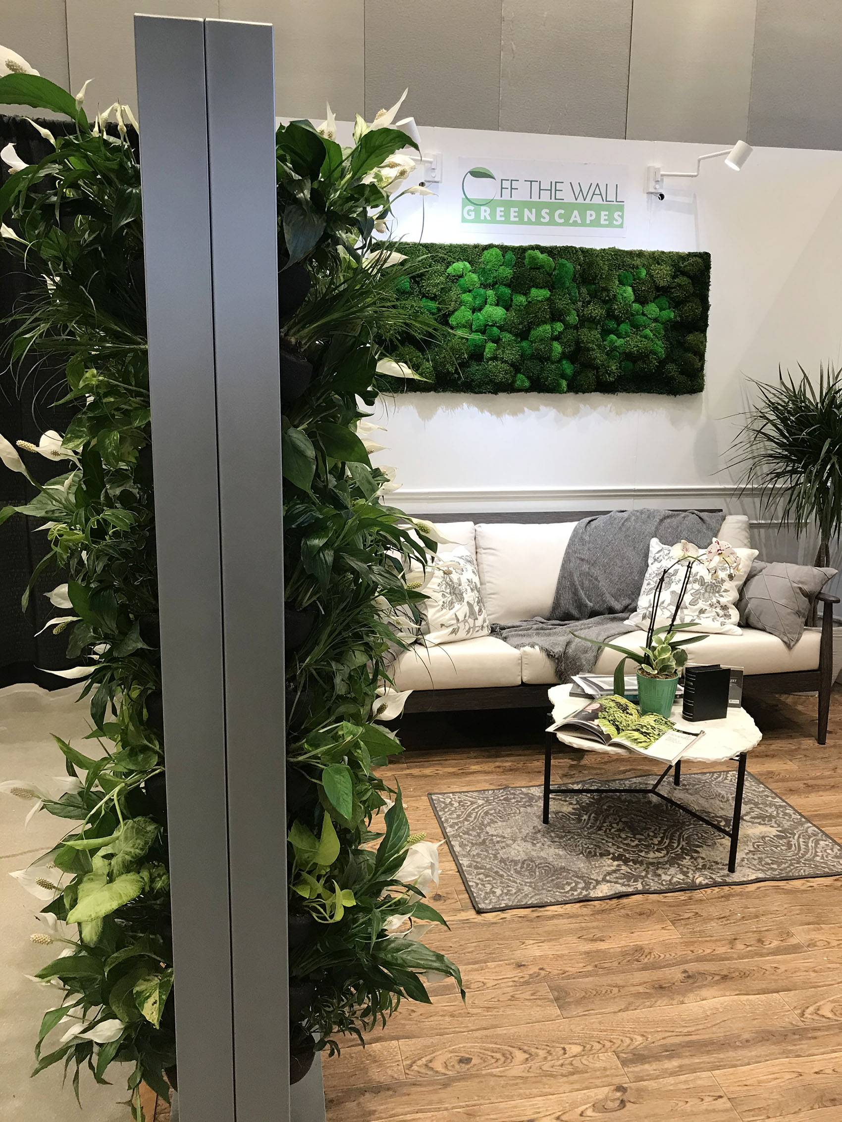 Living dividers create beautiful privacy walls, like this one we used at the Winnipeg Renovation Show in January of 2020.