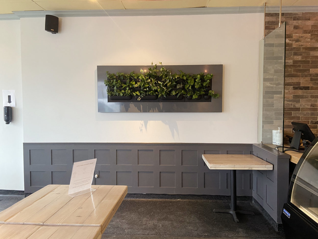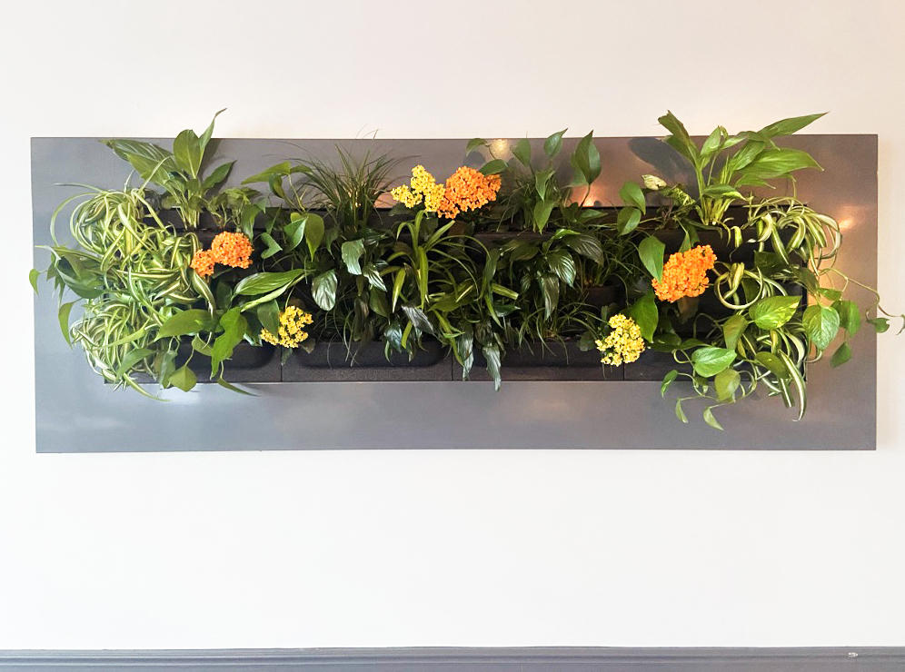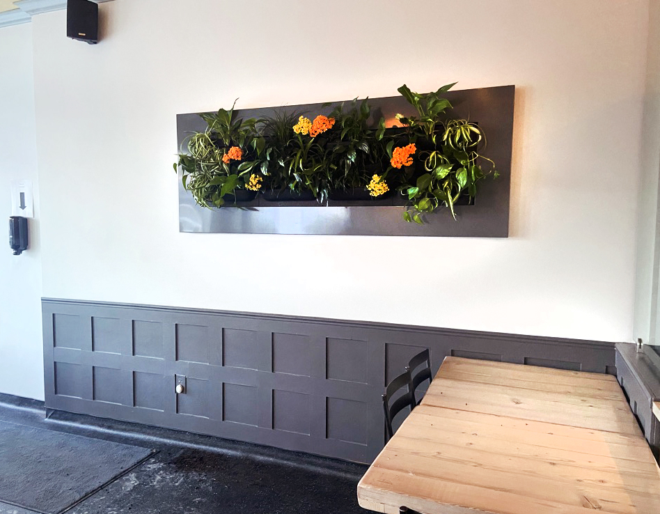 Design, installation, and refresh by Off the Wall Greenscapes. The plants in living frames are easy to swap out for a new look anytime.
