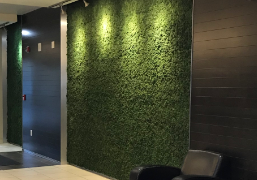 The term green wall is also used to describe vertical installations of preserved foliage and moss, as well as artificial green walls using faux plants.