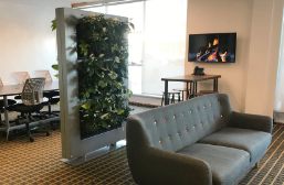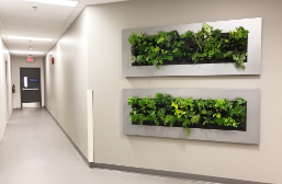 Living green walls are created using live plants. Custom living green wall systems are mounted to walls and built to size. Living green walls are also available as free standing room dividers. The smallest living green option we offer is called a living frame, and is about the size of a small painting.